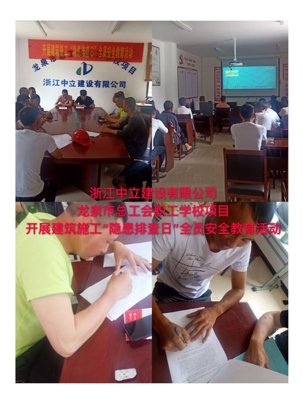 我公司嚴格落實麗水市住房和城鄉(xiāng)建設(shè)局(麗建便函〔2020〕75)號《關(guān)于開展2020年全市建筑施工“隱患排查日”活動的通知》文件精神,所有在建項目在5月10日(星期日)暫停施工一天,進行隱患自查自糾和全員教育。