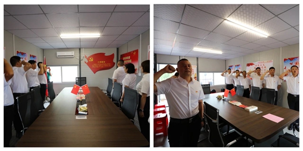 旗幟指引方向,誓詞凝聚力量,面向鮮紅的中國共產黨黨旗,鐘鳴同志領誓,黨員同志重溫入黨誓詞。錚錚誓言,表達了身為新時代共產黨員的責任和擔當,許下了對黨忠誠、永不叛黨的堅定承諾。