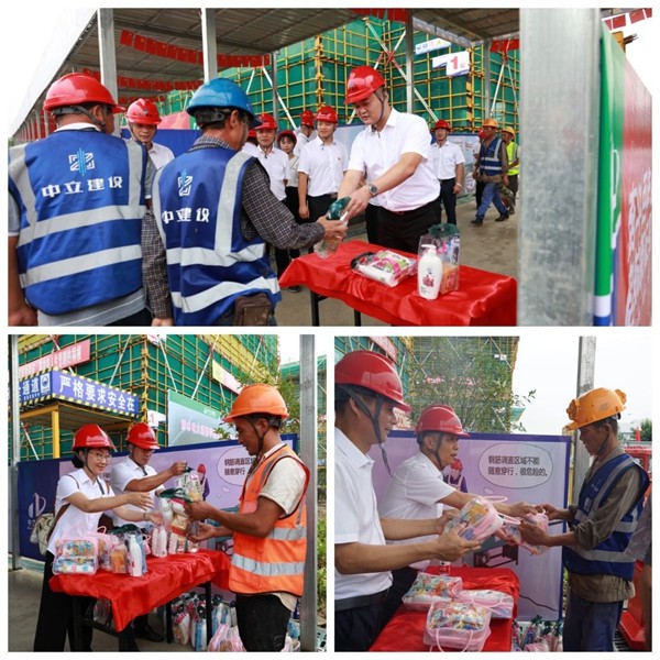公司為高溫作業的一線工人送去慰問品,感謝大家在高溫下依舊奮斗在各自的工作崗位上,并叮囑施工人員要持續做好自身的防疫防護措施和夏季個人防暑防護工作,保持健康的身體和良好的精神狀態,保障項目安全生產。